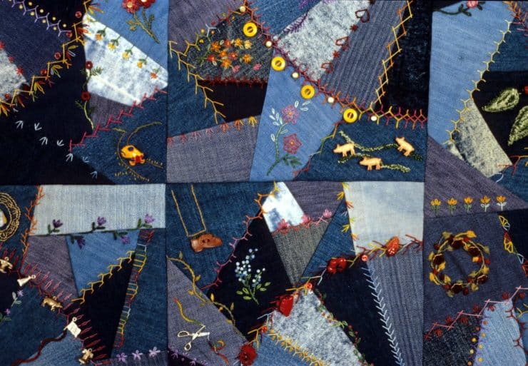 Джинсовая ткань также часто применяется в создании лоскутных изделий. Техника «крейзи» с использованием джинсы позволяет изготавливать стильные вещи из старых джинсов. В данной технике нет особых правил и схем. Шаблоны также не применяются, мастерица может использовать любые формы лоскутов и создавать из них узоры на свое усмотрение.